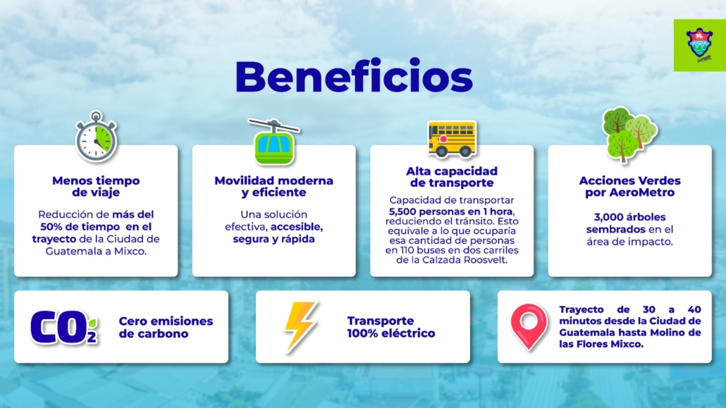 Al funcionar con tecnología de electromovilidad, el AeroMetro no genera emisiones contaminantes durante su operación. Este beneficio ambiental se suma al uso eficiente del espacio urbano, ya que el sistema no requiere carriles exclusivos.